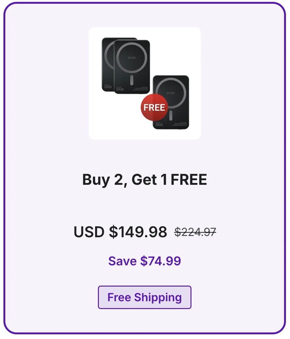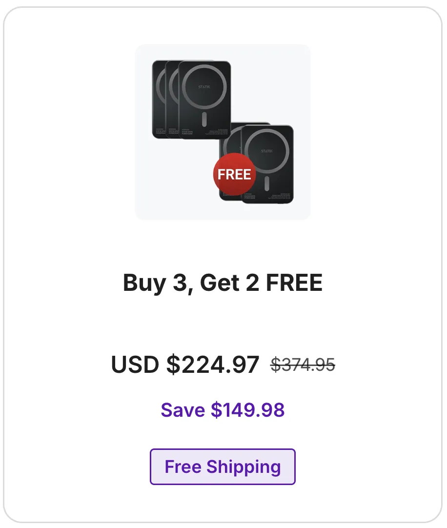 ✓ Special Low-Power Mode Protects Expensive Devices — Statik’s intelligent charging mode safely powers earbuds, smartwatches, and fitness bands without risk of overcurrent damage.